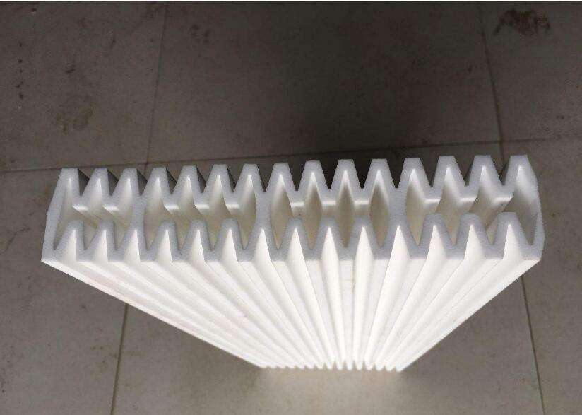 塑燒板濾芯呈剛性波浪式多孔結(jié)構(gòu),是燒結(jié)板板厚約4mm,其內(nèi)部形成大約30μm的均勻孔隙,然后通過特殊的噴涂工藝在母體表面的空隙里填充PTFE涂層,形成 2~3 μм的微孔.。